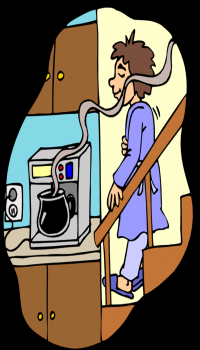 I go to the kitchen and take a cup of coffe I brush my teeth